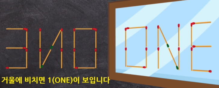 2. 거울에 비춰보면 숫자 1의 영어인 ONE을 확인할 수 있습니다.