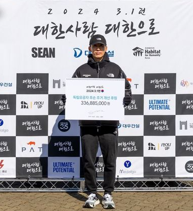 션은 이날 체감 온도 영하 10도의 추운 날씨와 허리 부상에도 2시간38분31초의 기록으로 31㎞를 완주했다. 추가로 개인 참가자 1000명과 함께 3.1㎞를 달리며 3·1절의 의미를 되새겼다. 개인 참가자 3100명의 참가비 전액과 기업 후원금은 한국해비타트에 기부됐다. 약 3억 3000만원의 기부금은 독립유공자 후손의 주거환경 개선 사업에 사용될 예정이다.